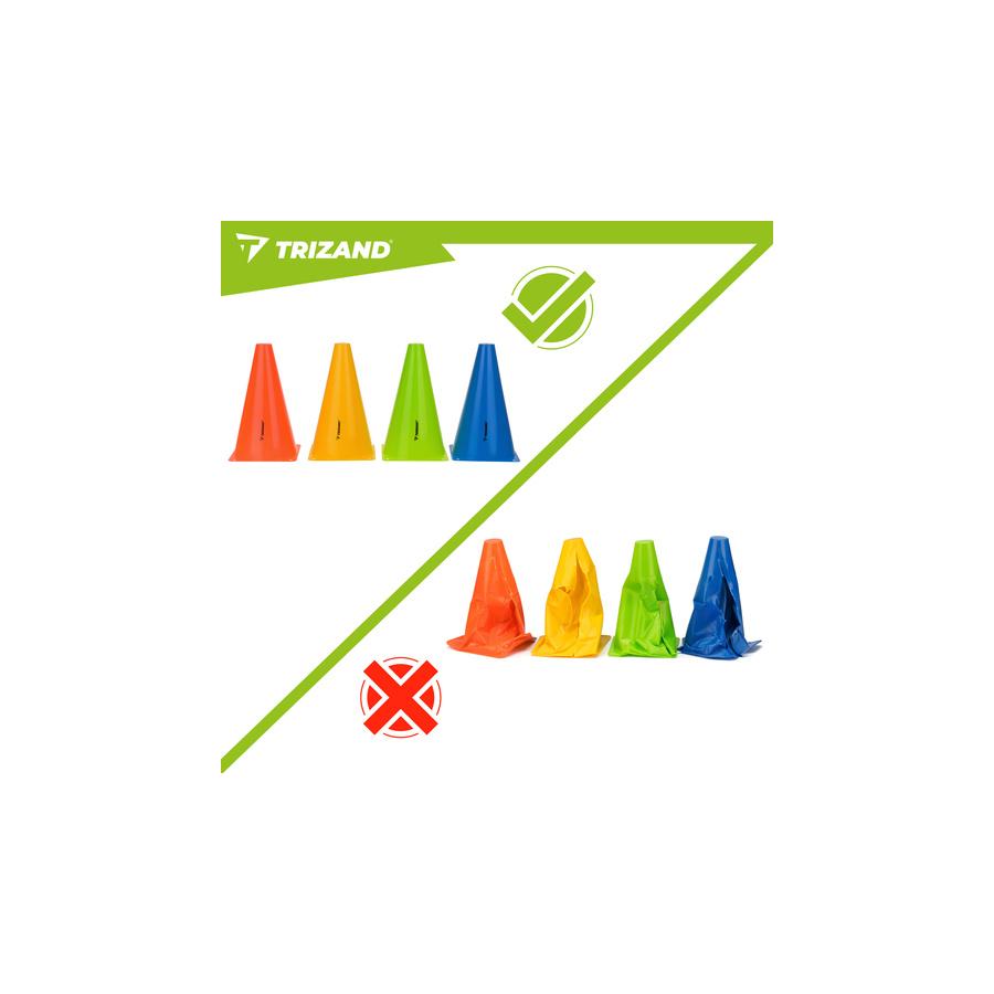 Tréningové kužele Trizand sú praktickou pomôckou na organizáciu tréningu a zlepšenie pohybovej koordinácie. Vďaka intenzívnym farbám a ľahkému dizajnu si rýchlo pripravíte cvičebnú dráhu kdekoľvek. Ide o ideálne riešenie pre trénerov, športovcov a aktívnych ľudí.