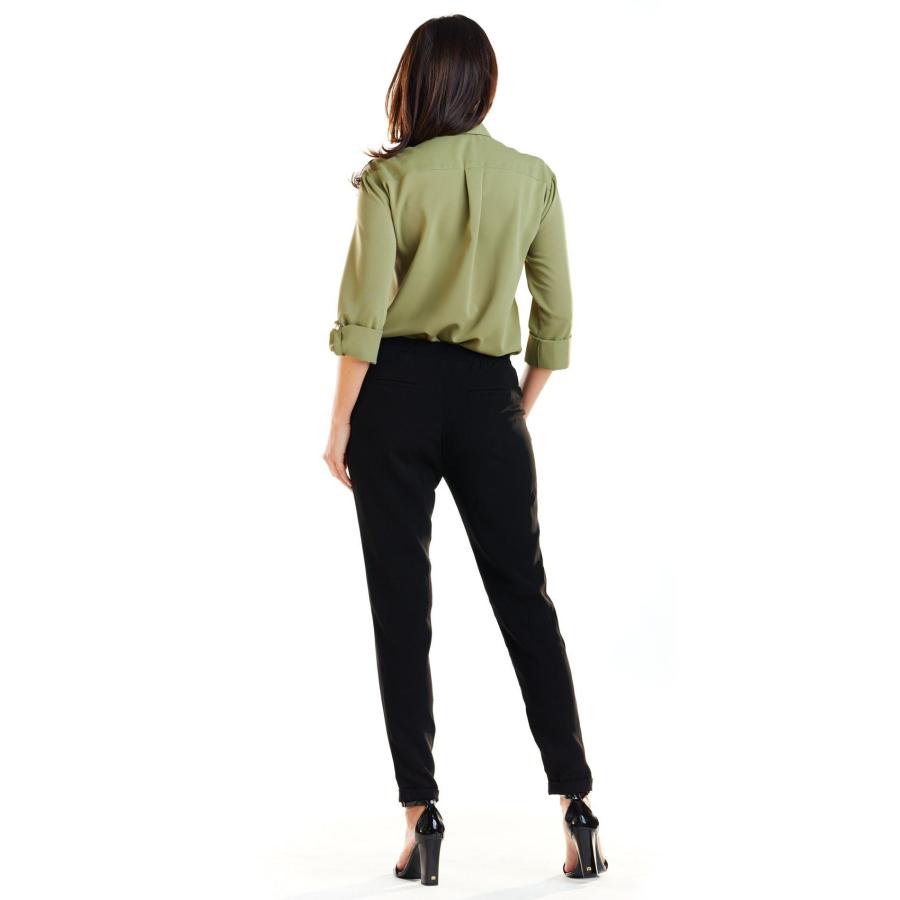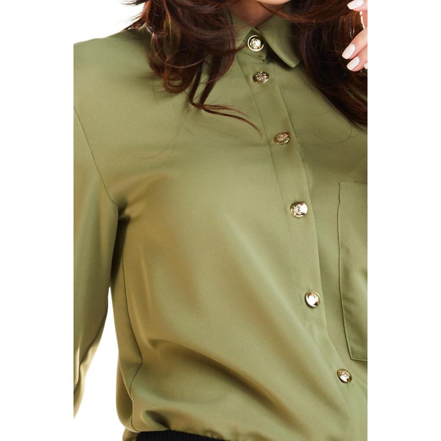 Dámska klasická košeľa s dlhým rukávom v kaki farbe a s veľkými zlatými gombíkmi, vyrobená z vysoko kvalitného materiálu podľa najnovších módnych trendov.