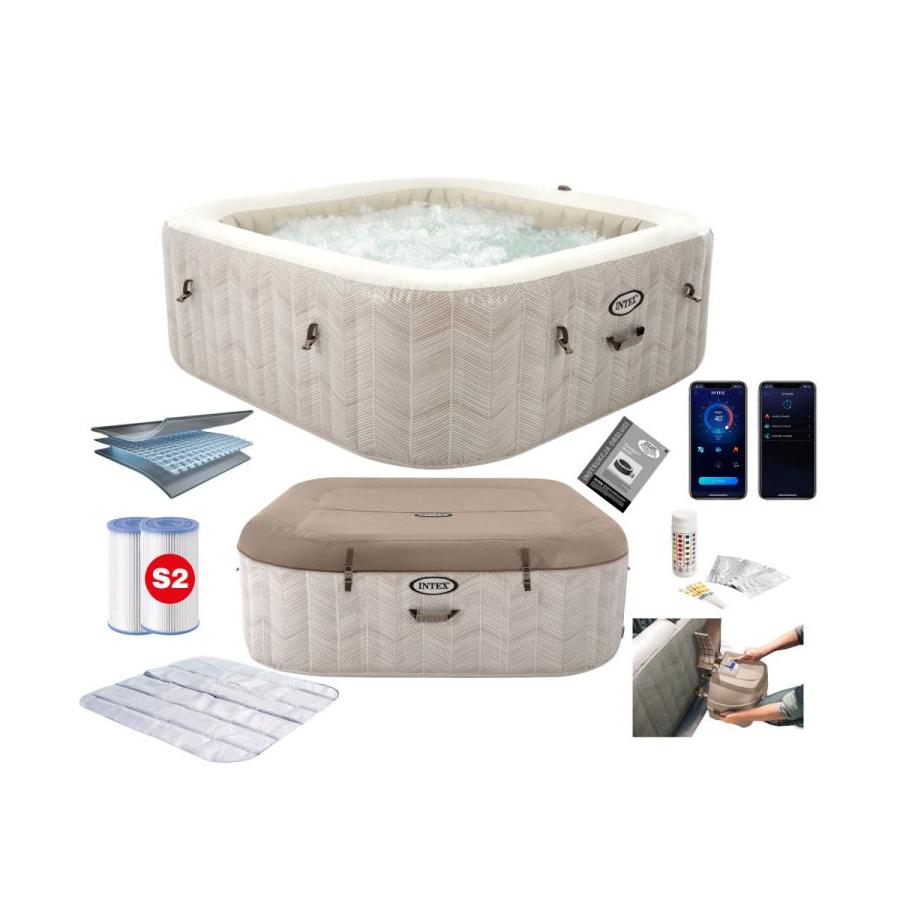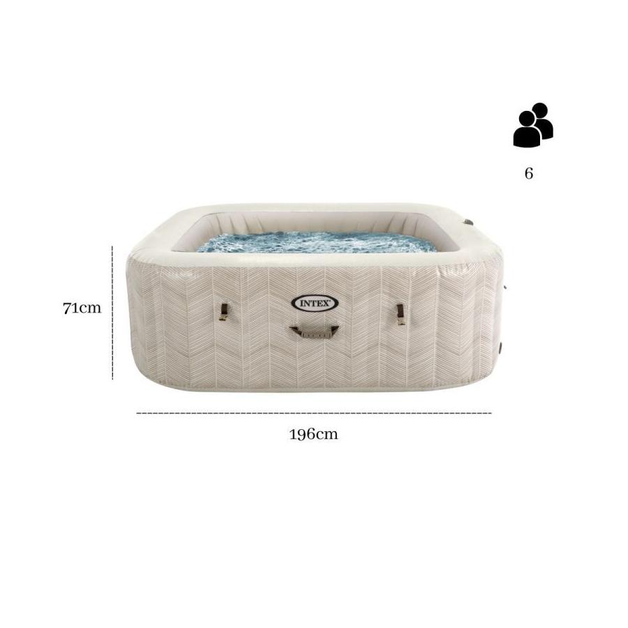 Nafukovacia štvorcová hydromasážna jacuzzi pre 6 osôb - 196x71 cm + prémiové príslušenstvo INTEX, vyrobená z vysoko kvalitného materiálu a navrhnutá podľa najnovších trendov.