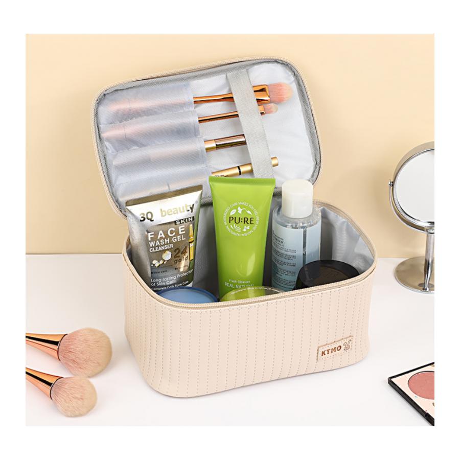 Prešívaný kozmetický kufrík v béžovej farbe,...