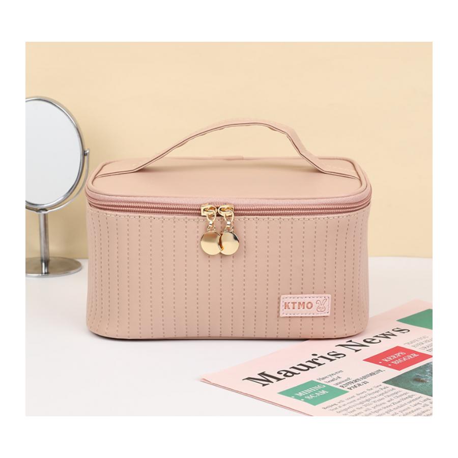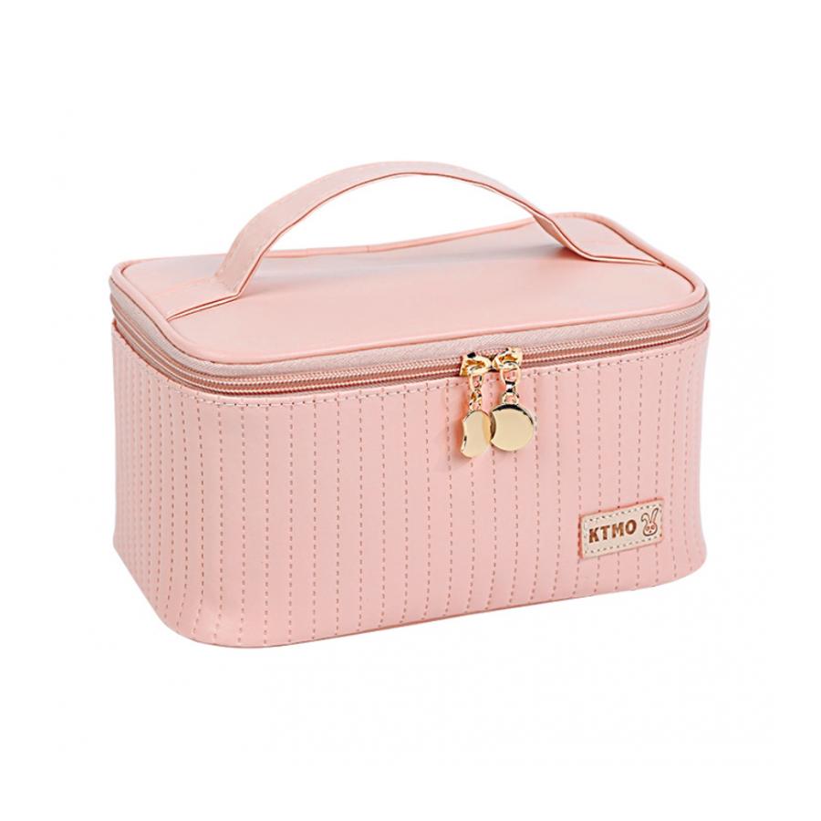 Prešívaný kozmetický kufrík v ružovej farbe, vďaka ktorému budete mať prehľad vo svojej kabelke, taške alebo kufri, vyrobený z kvalitného materiálu.