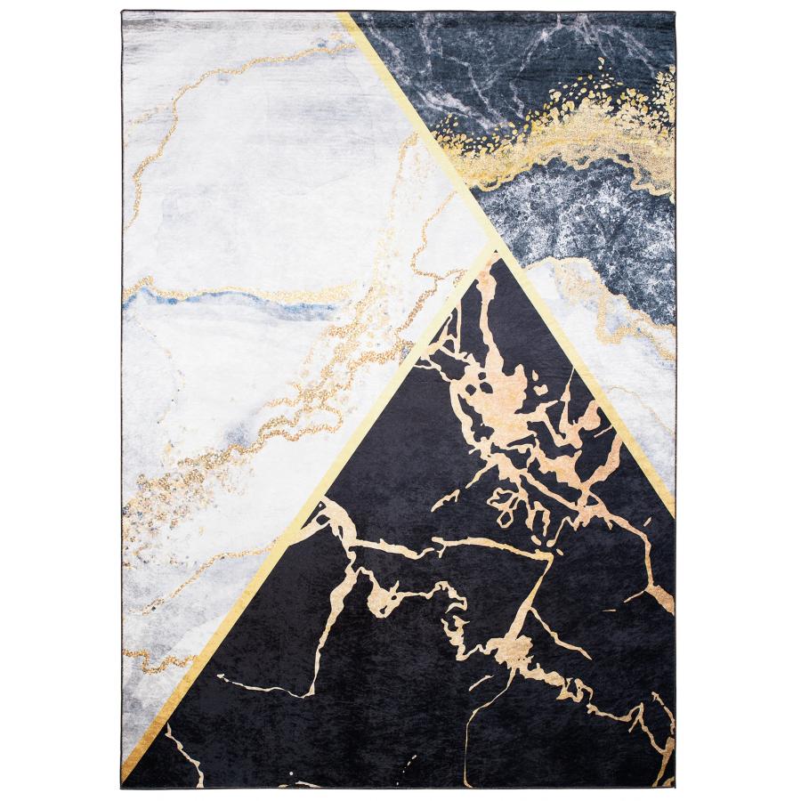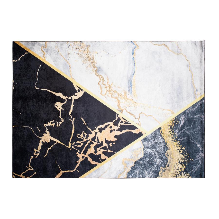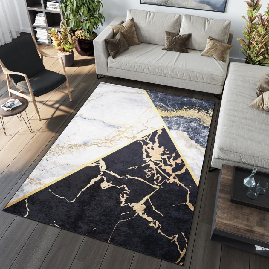 Čierny koberec so zlatým vzorom, vyrobený z...