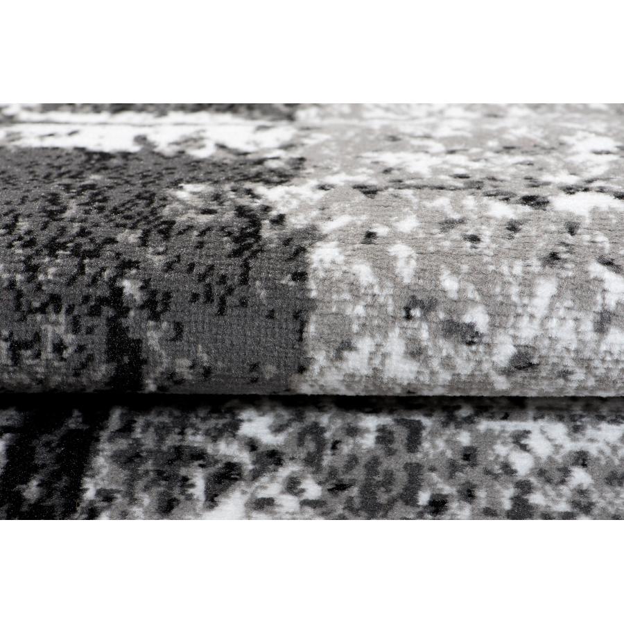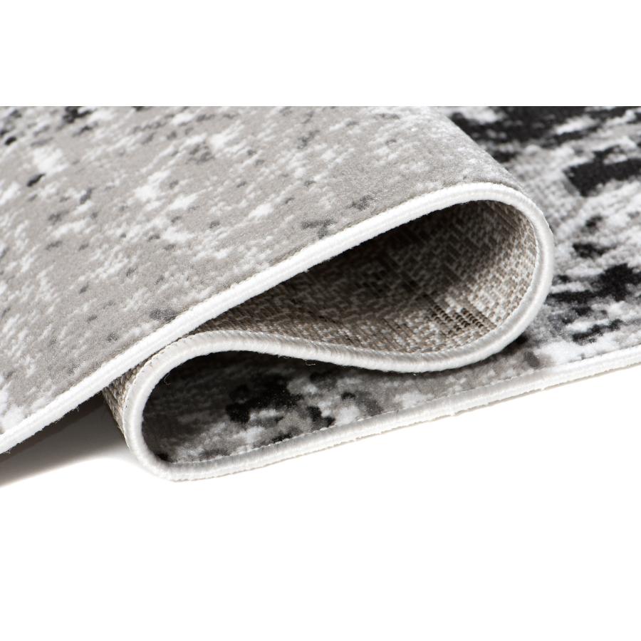 Bielo-sivý moderný koberec, vyrobený z vysoko kvalitného materiálu a navrhnutý podľa najnovších módnych trendov.