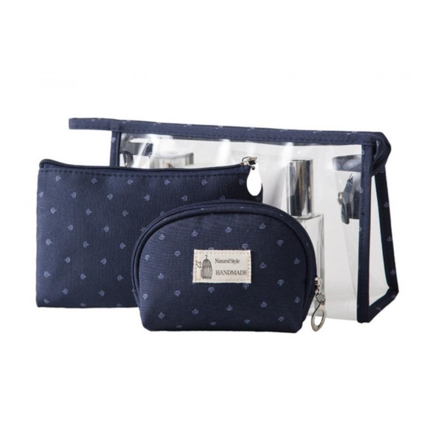 Sada 3 kozmetických tašiek v tmavomodrej farbe, vďaka ktorej budete mať prehľad vo svojej kabelke, taške alebo kufri, vyrobená z kvalitného materiálu.