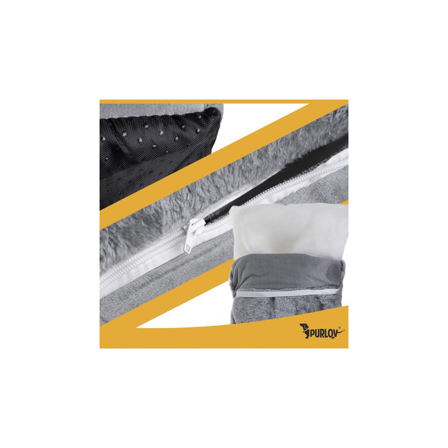Purlov mačací domček - mäkký plyšový pelech - baldachýn so zipsovou strechou - odnímateľný vankúš - elegantný sivý do obývačky