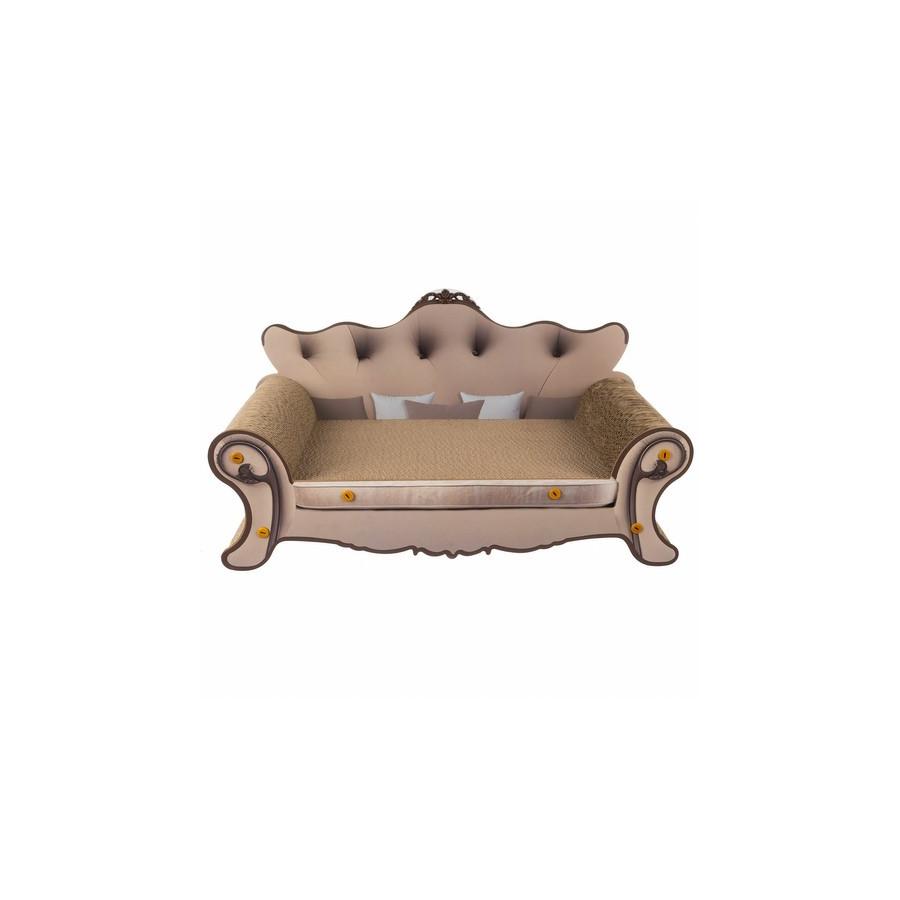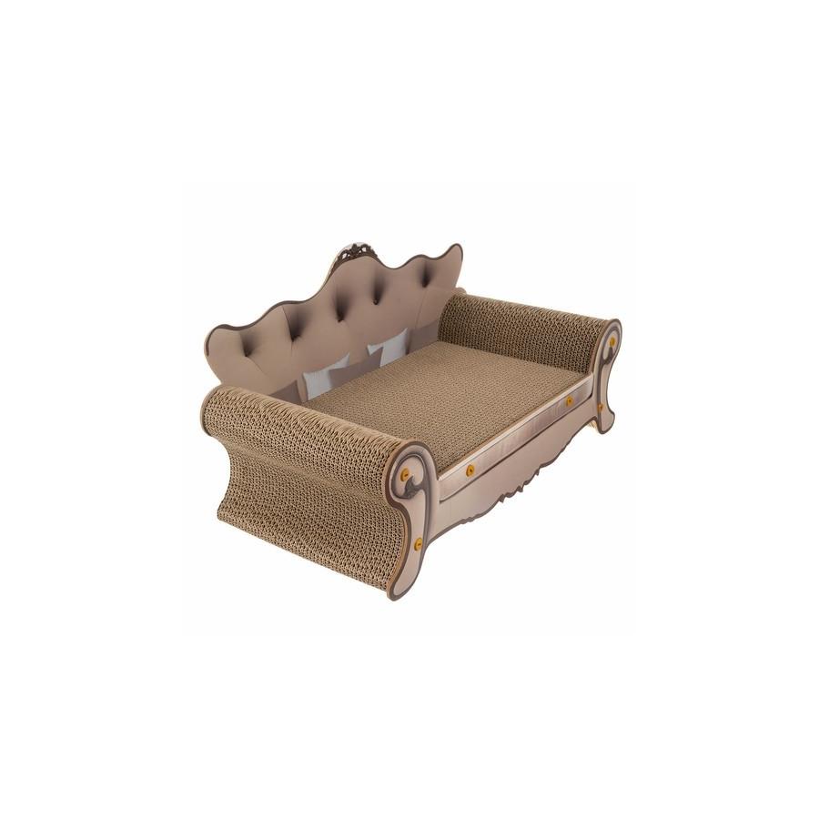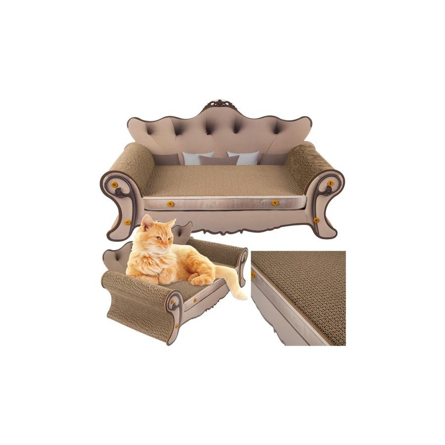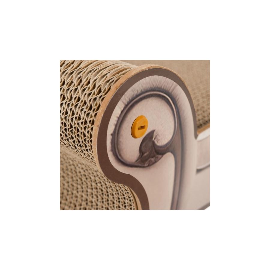VÝNIMOČNÝ KOMFORT A FUNKČNOSŤ - pelech a škrabadlo v jednom, navrhnutý v tvare elegantnej pohovky, poskytuje mačke nielen miesto na odpočinok, ale aj priestor na uspokojenie prirodzených potrieb škrabania. Povrch pelechu je vyrobený z vrstvenej lisovanej pohodlnej vlnitej lepenky, ktorá je pre mačku príjemná a stimuluje ju k používaniu škrabadla. Posteľ vďaka svojmu ergonomickému tvaru poskytuje mačke plný komfort a nabáda ju tráviť dlhé chvíle oddychu.
