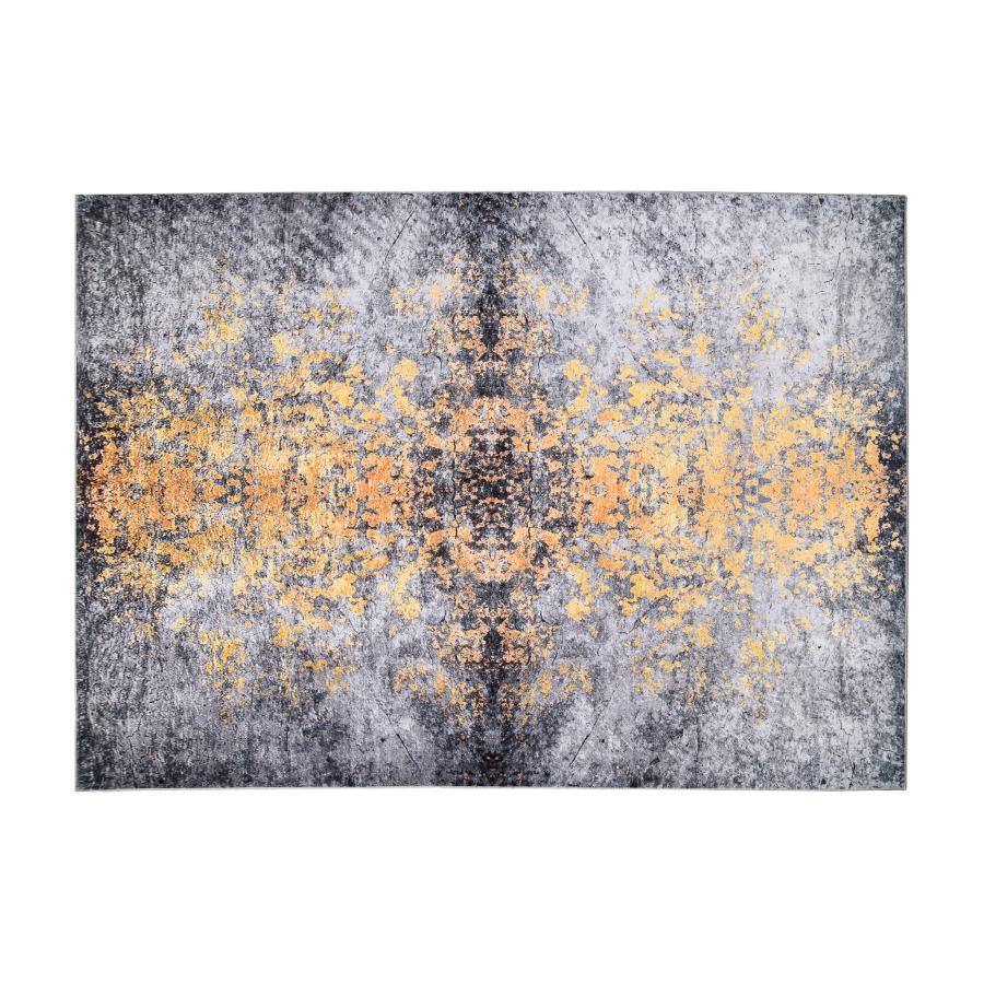 Čierny koberec so zlatým vzorom, vyrobený z...