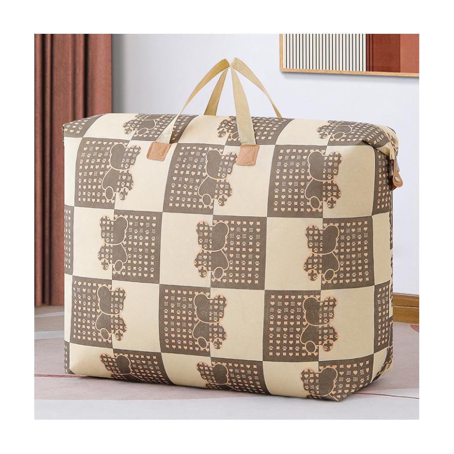 Úložná taška so vzorom, ktorá slúži ako úložný priestor na rôznu posteľnú bielizeň, uteráky, deky, oblečenie, atď.