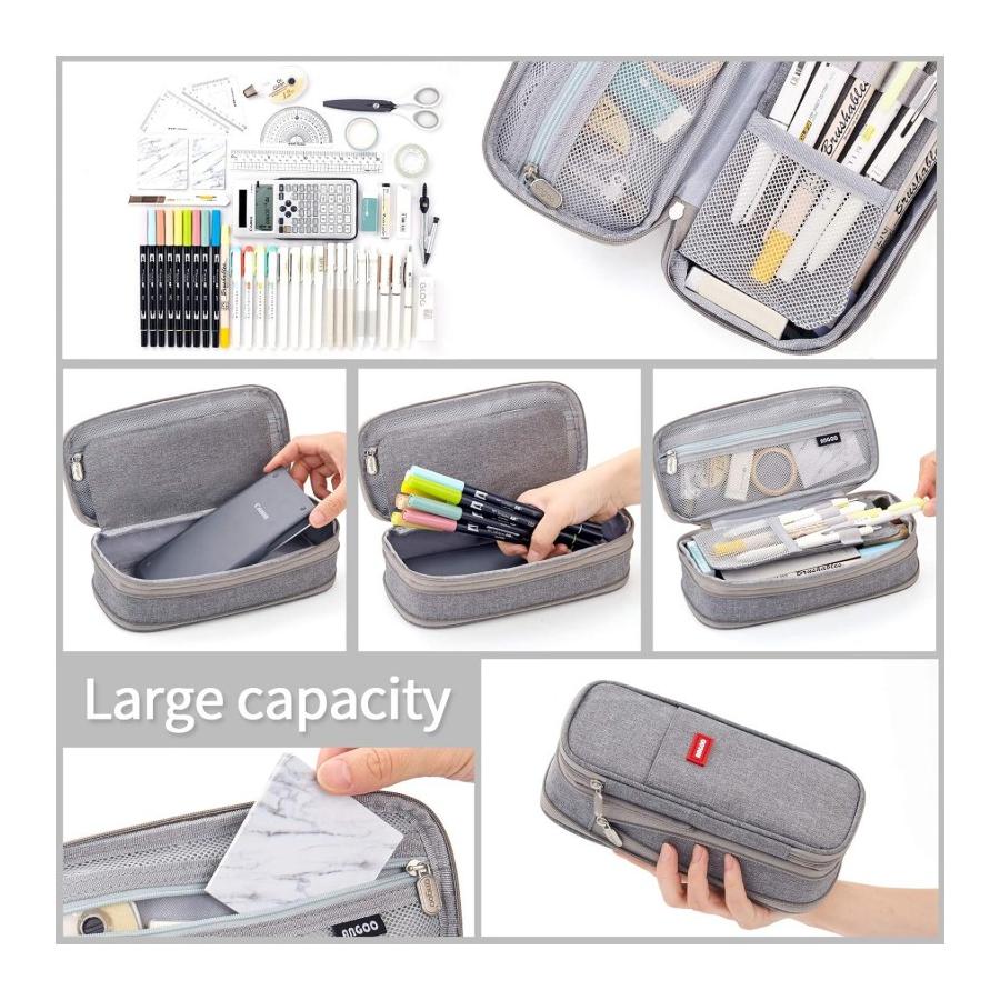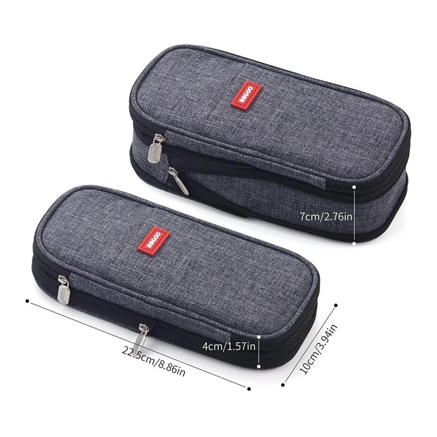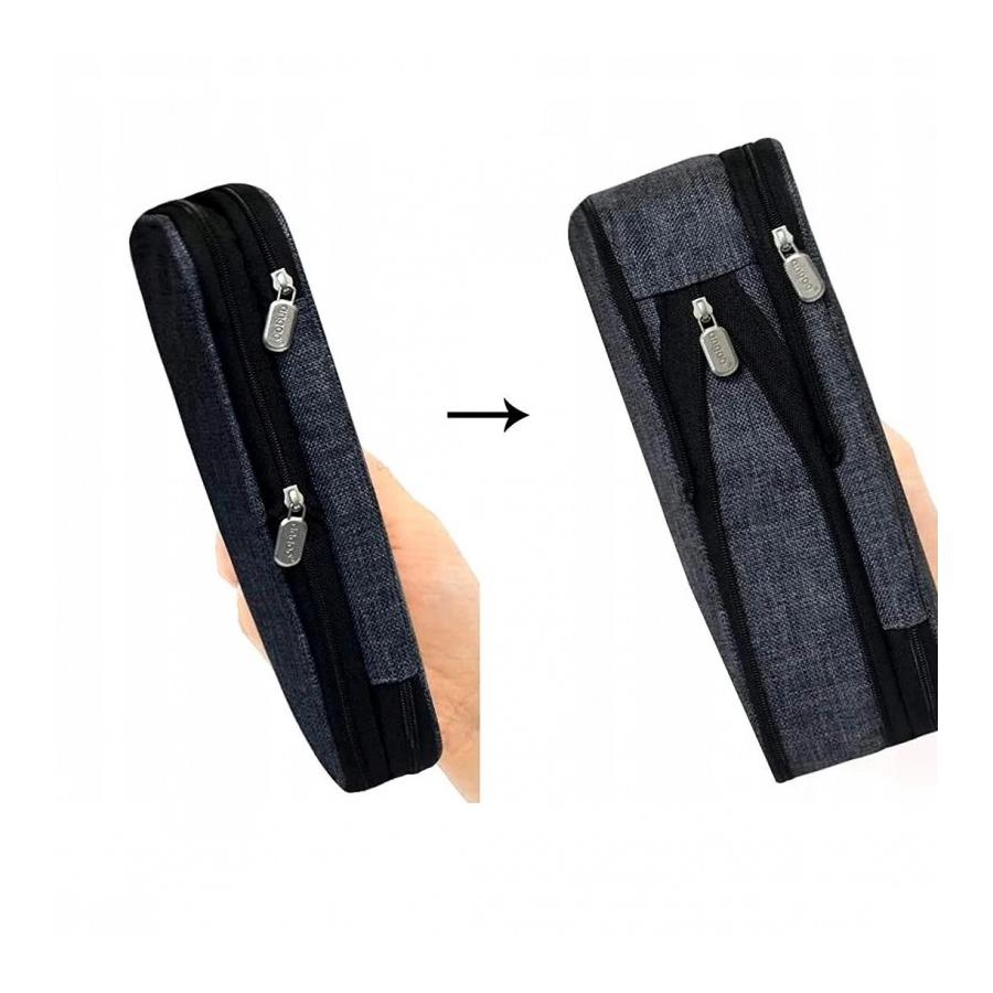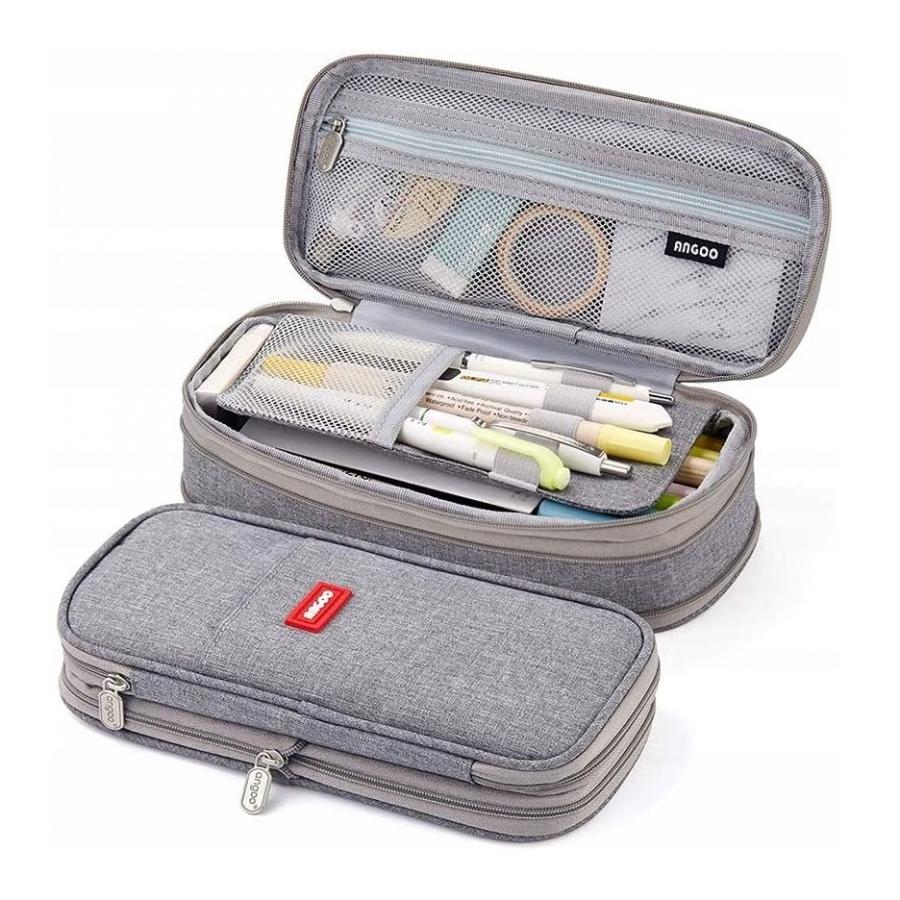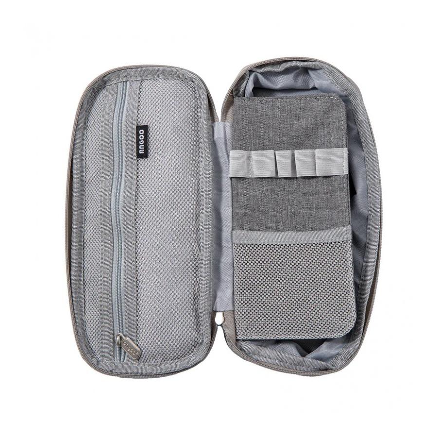 Veľký peračník s dvomi priehradkami v sivej farbe, ktorý slúži ako úložný priestor na rôzne maličkosti.