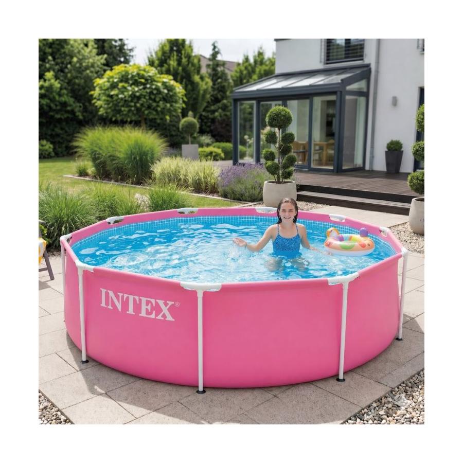Okrúhly záhradný bazén s rámom pre deti 244x76 cm INTEX v ružovej farbe, vyrobený z vysoko kvalitného materiálu a navrhnutý podľa najnovších trendov.
