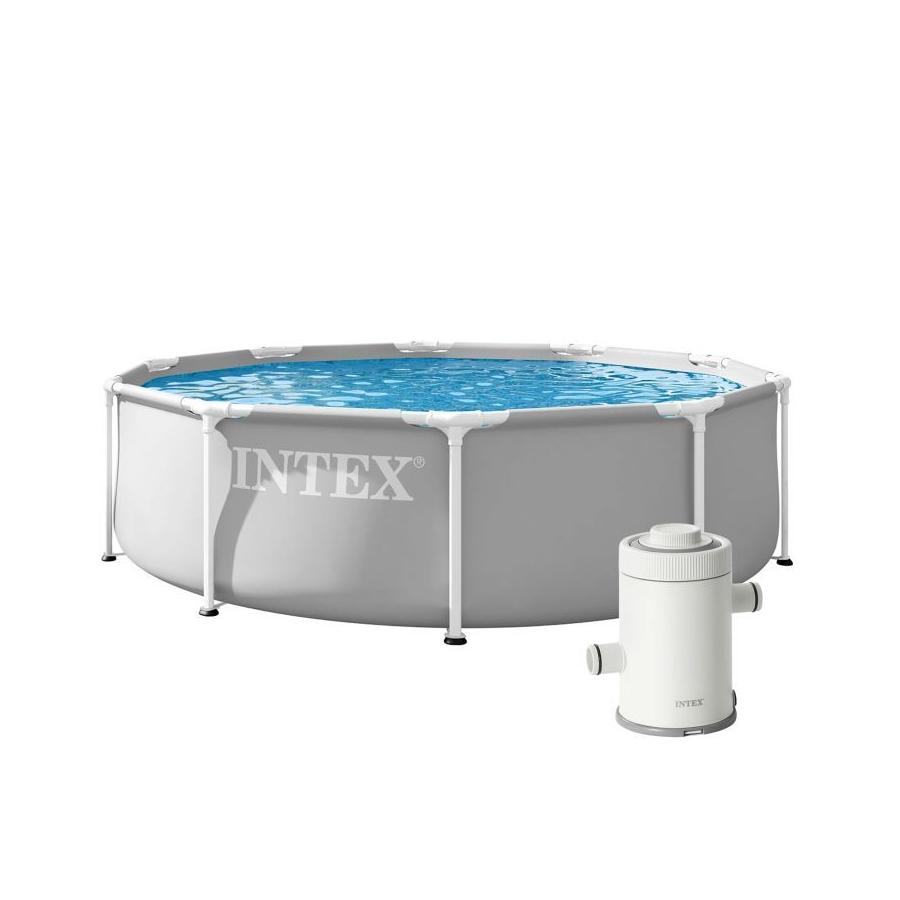Záhradný bazén s okrúhlym rámom a s čerpadlom 305x76 cm INTEX v sivej farbe, vyrobený z vysoko kvalitného materiálu a navrhnutý podľa najnovších trendov.