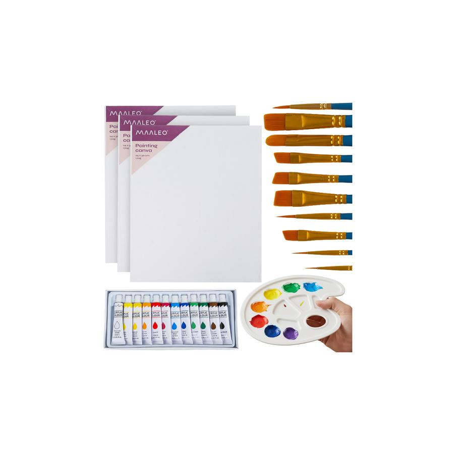 Maaleo Painting Art Set – farby, štetce, plátno a paleta – kreatívny darček pre deti a dospelých, ideálne na maľovanie na plátno