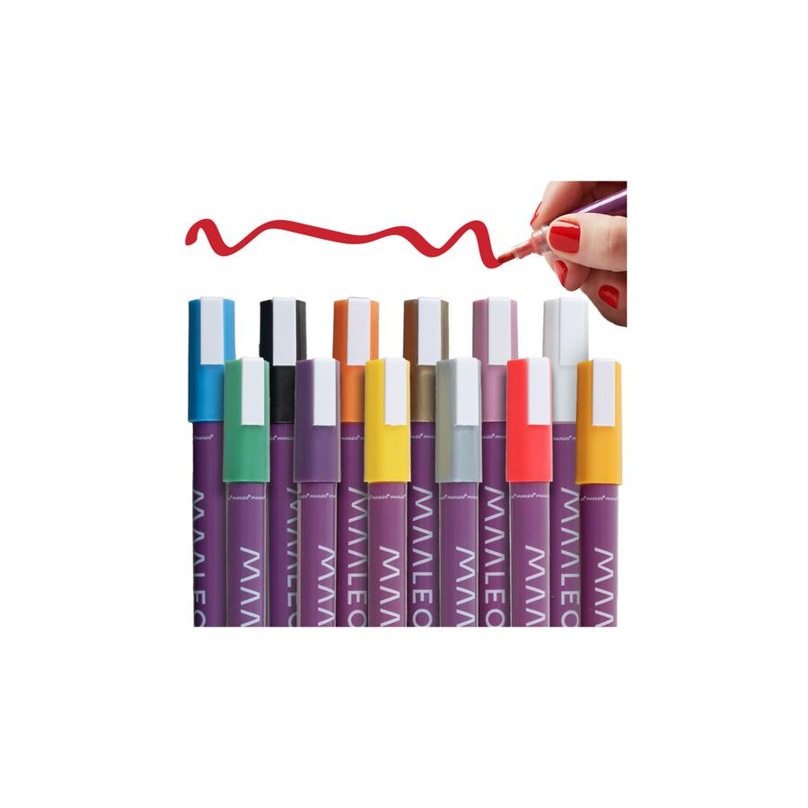 Akrylové fixky MAALEO 12 farieb, vodeodolné fixky, ozdobné fixky s farbou - vytvorte si čo len chcete!