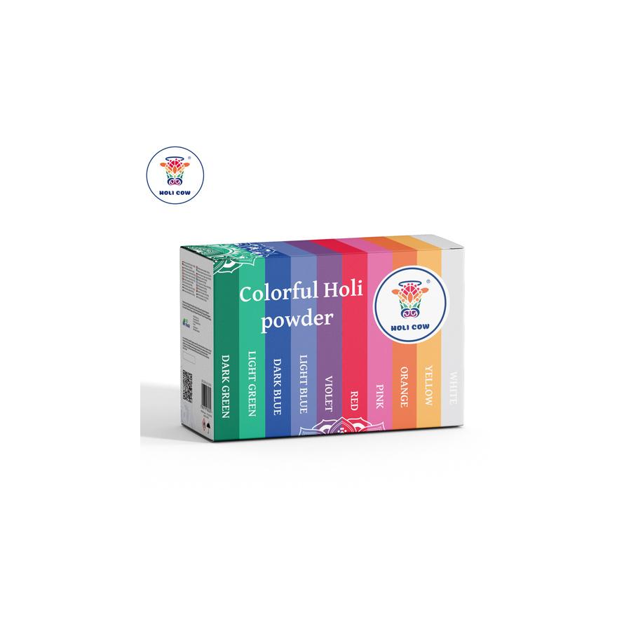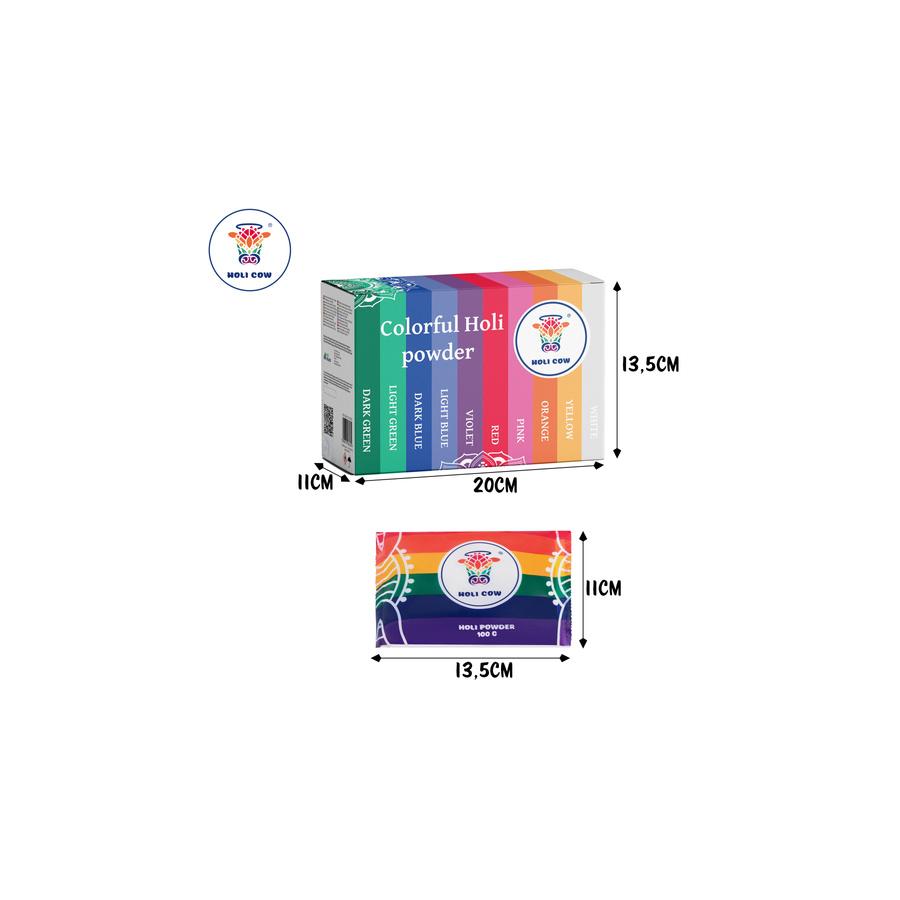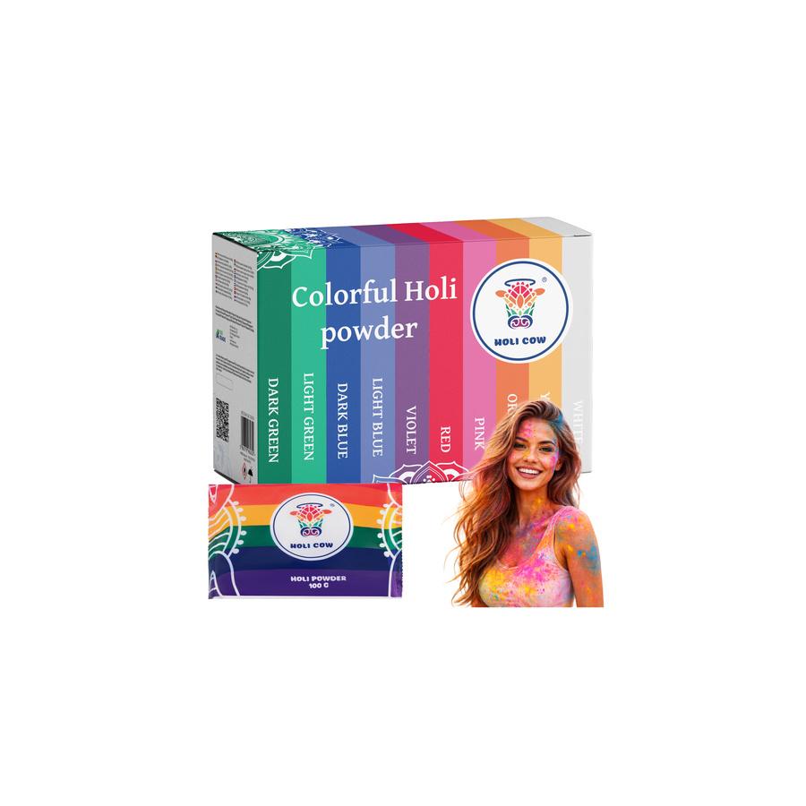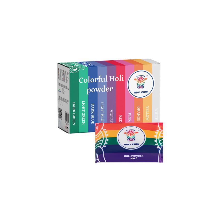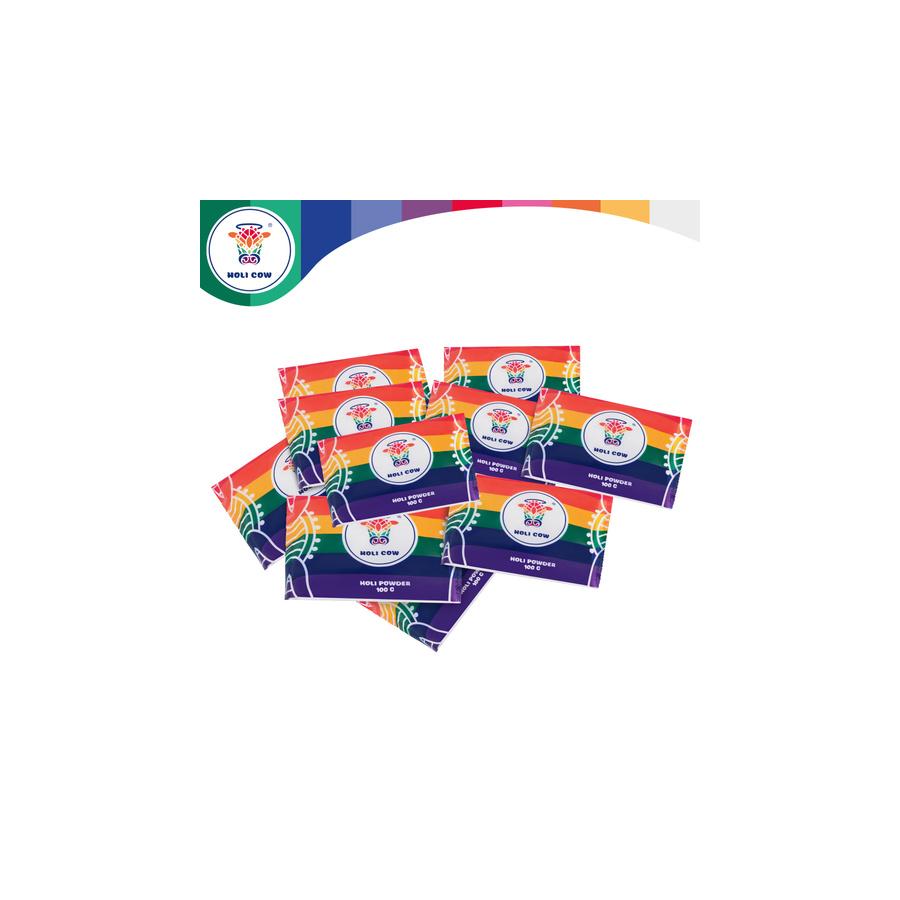 Sada práškov Holi 10x100g Holi Cow Farebná festivalová zábava