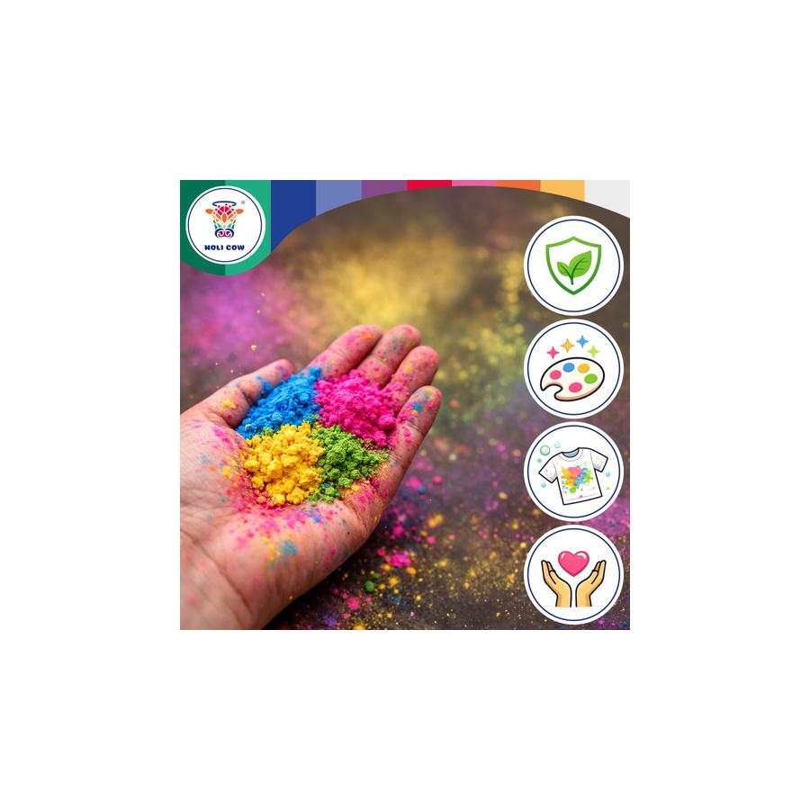 Sada prášku Holi 10x100g farebný prášok Holi Cow prináša ešte viac farieb a väčší efekt na každú párty. Intenzívne farby vytvárajú veľkolepé oblaky, ktoré priťahujú pozornosť a dodávajú udalostiam jedinečný charakter. Je ideálna na festivaly, narodeniny, fotenia a akúkoľvek príležitosť, kde je zábava kľúčová. Tento poľský značkový produkt od poľského výrobcu zaručuje kvalitu, funkčnosť a bezpečnosť.